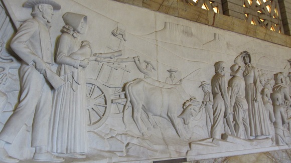 You enter the Hall of Heroes, which has an extensive marble frieze running along the walls depicting the history and daily life of the Voortrekkers.
