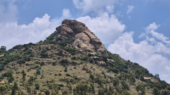 I wanted to visit The Lion Rock Mountain which is in a Maseru suburb. Google Maps kept directing us onto dirt roads to get into the suburb, but we persisted until we turned left onto a tar road. Close to the viewpoint, we turned onto a dirt road which was in poor condition. The best viewing orientations for this remarkable rock formation are from the east and northeast.