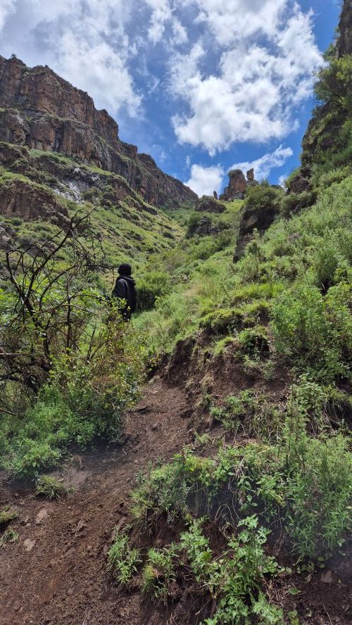 The next day, we hiked down the gorge to the base of the Maletsunyane Falls. As recommended by the lodge, we hired a guide.