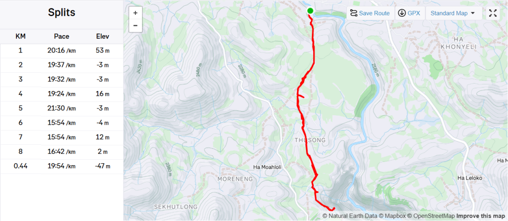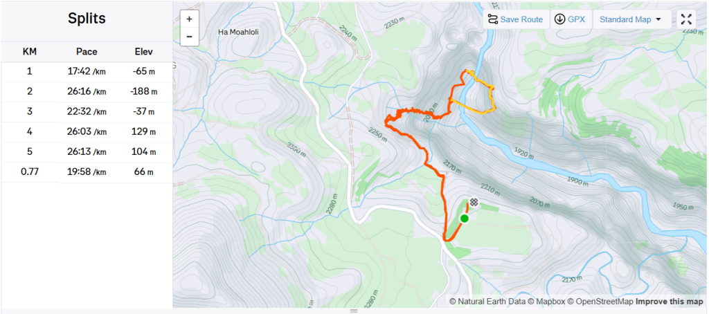 We stayed at Semonkong Lodge which is situated at 2200 m (7218 ft). The road to the lodge through the commercial centre of the settlement was in poor condition, though 2×4 vehicles were managing to get through.
